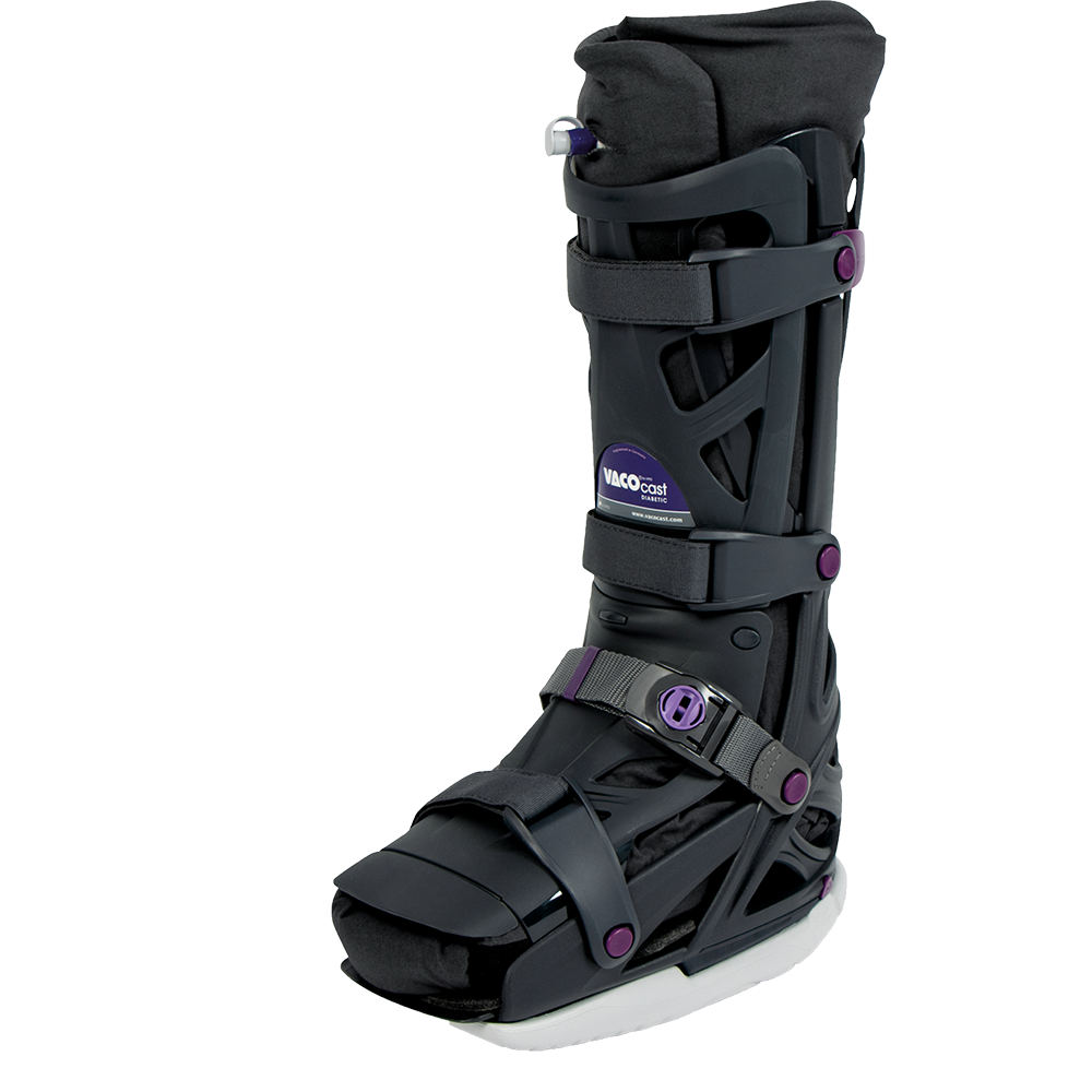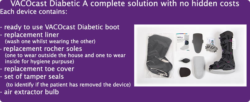 “These are the only boots that conform to a patient’s foot in a similar fashion to a TCC. The VACOcast is simple to apply, cost effective as it reduces the demand on the clinician’s time and NHS appointments, as the patient does not require weekly appointments to remove and replace a TCC. An off loading shoe or other knee high offloading devices do not distribute the pressure evenly across the foot comparable to the VACOcast as these other devices cannot conform to the shape of the patient’s foot giving support to the plantar arch.”